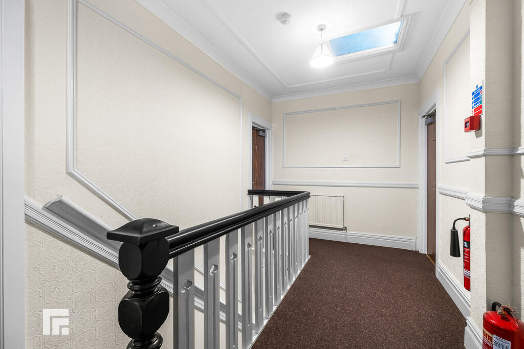 FIRSTFLOORCOMMUNALHALLWAY Carpeted stairs rising to the first floor. Emergency lighting. Doors to all first floor rooms. Radiator.