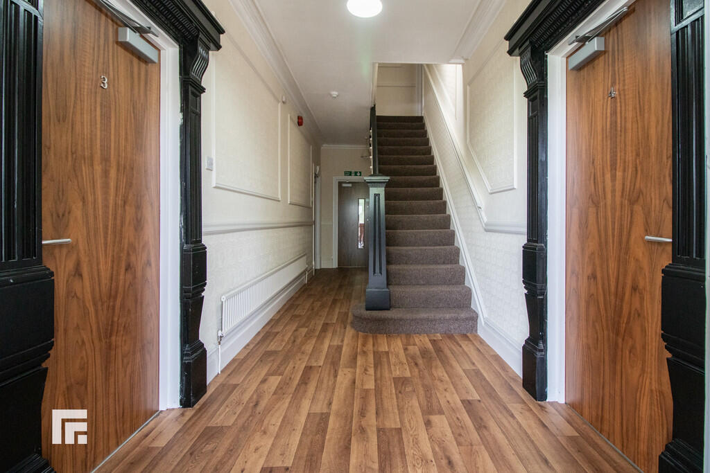 COMMUNALHALLWAY Vinyl flooring. Radiator. Stairs rising to the first floor. Doors to ground floor Studios and a rear inner hallway providing access to the rear garden. Emergency Lighting.