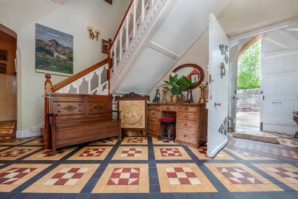 The Old Rectory is a prestigious, Grade II listed detached home spread over approximately 6,000 sq.ft. of well-presented accommodation, situated at the end of a private lane in the semi-rural village of St. Fagans, amongst an acre of exceptional gardens. Split over three spacious floors, plus cellar, this versatile home retains many original features and beautiful architecture with fantastic views from all aspects. Accessed from the generous entrance porch and hallway is a well-proportioned lounge with feature high ceiling and wood burning stove, formal dining room, drawing room, music room/study, utility room, cloakroom and WC. The kitchen is fitted with a excellent range of handmade cabinets and breakfast bar providing a fantastic entertaining space. Two staircases lead to the first floor which provides 5 bedrooms including principle bedroom with dressing room, and two bathrooms. To the second floor are three additional bedrooms and large store room. Double Garage.DESCRIPTION The Old Rectory is a prestigious, Grade II listed detached home spread over approximately 6,000 sq.ft. of well-presented accommodation, situated at the end of a private lane in the semi-rural village of St. Fagans, amongst an acre of exceptional gardens. Split over three spacious floors, plus cellar, this versatile home retains many original features and beautiful architecture with fantastic views from all aspects. Accessed from the generous entrance porch and hallway is a well-proportioned lounge with feature high ceiling and wood burning stove, formal dining room, drawing room, music room/study, utility room, cloakroom and WC. The kitchen is fitted with a excellent range of handmade cabinets and breakfast bar providing a fantastic entertaining space. Two staircases lead to the first floor which provides 5 bedrooms including principle bedroom with dressing room, and two bathrooms. To the second floor are three additional bedrooms currently used as games room/hobby room/study and large storage room. Outside are magnificent gardens surrounding the property which are well stocked with mature trees, hedges and shrubs, pond, a number of idyllic seating areas plus enclosed courtyard leading to outbuildings. Detached double garage.