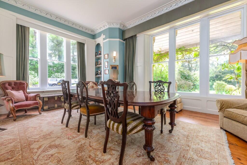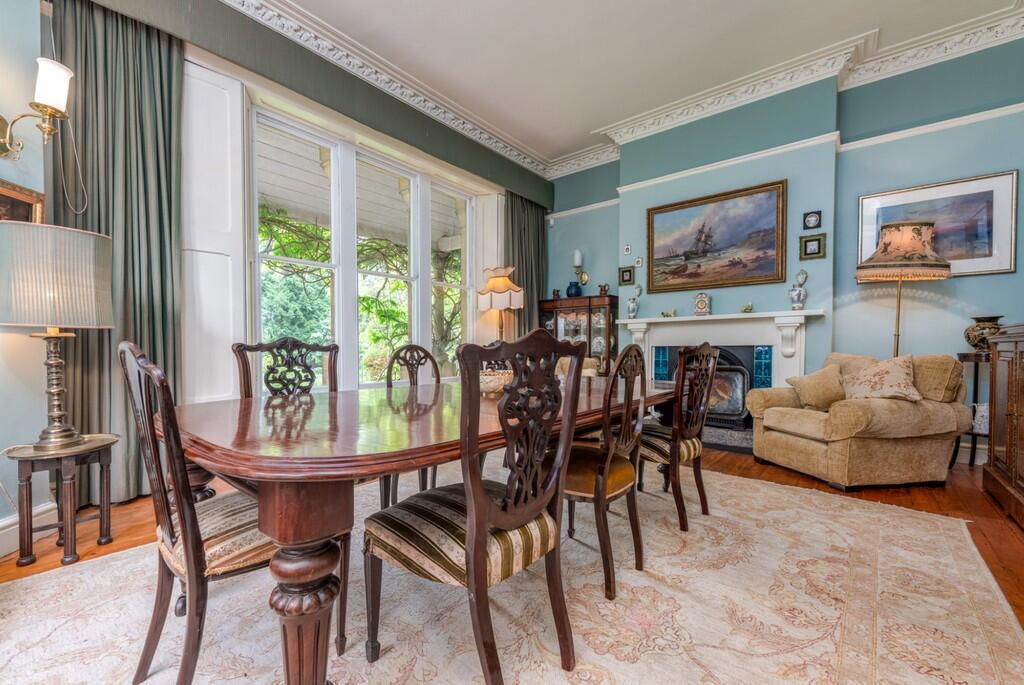 DININGROOM21' 3" x 16' 6" (6.50m x 5.03m) An exceptional dining room with ample space for large family dining table, sash cord windows to rear and side aspect, original fireplace, tall corniced ceiling, original wood flooring and radiator.