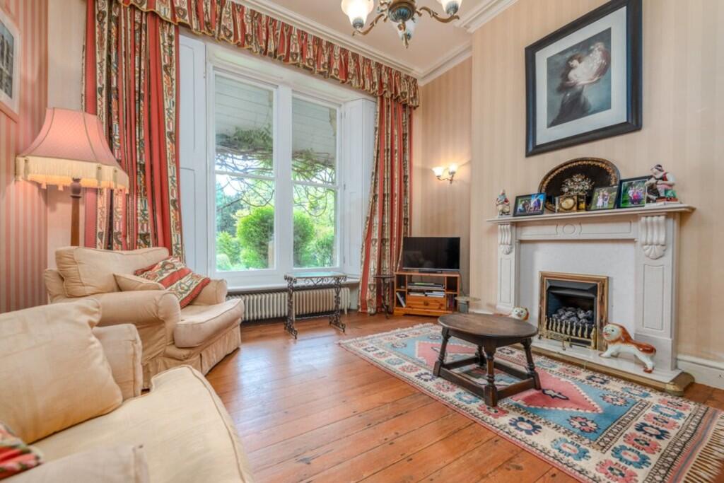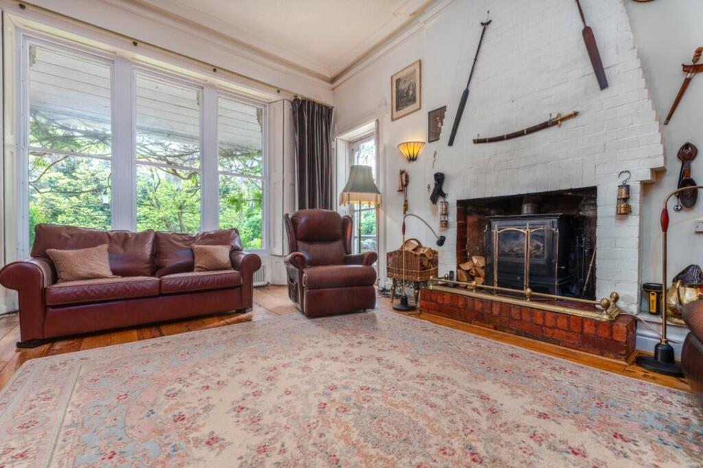 DRAWINGROOM20' 4" x 15' 9" (6.22m x 4.82m) Approached via double opening panelled doors leading to an exceptional reception with sash cord windows overlooking the rear garden, brick built fireplace with wood burning stove, wood flooring, door to rear patio and two radiators.