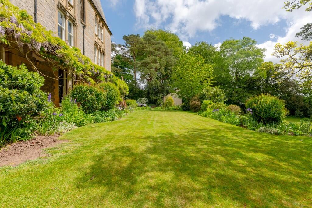 GARDENS Set within grounds of approx 1 acre enjoying well manicured lawns with attractive inset beds of plants and shrubs, with mature trees and conifers to borders, large side garden with circular pond, large paved patio, side courtyard with original well and brick built storage sheds. Long and wide driveway leading to the double garage