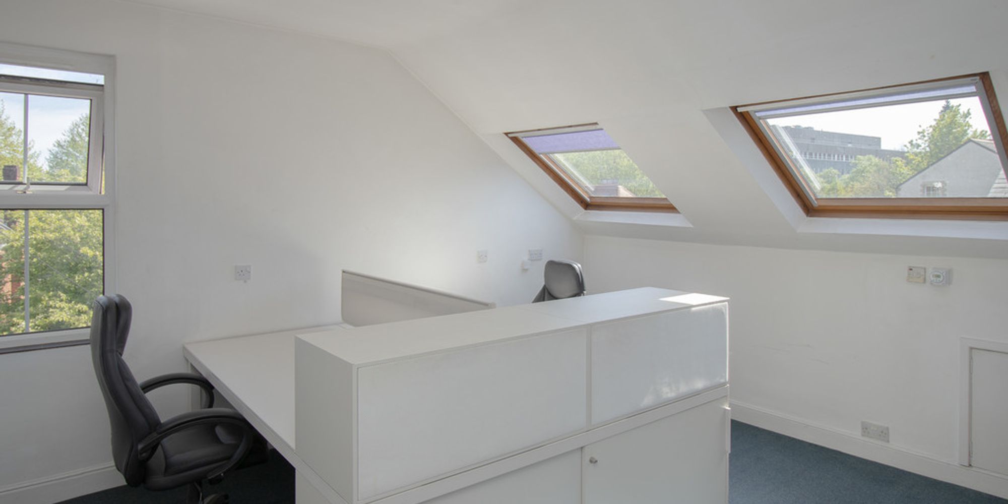 Fully furnished/serviced office benefitting from an all inclusive rental price with GCH, carpeting throughout, one car parking space, communal Male and Female W.C’s and kitchen facilities.