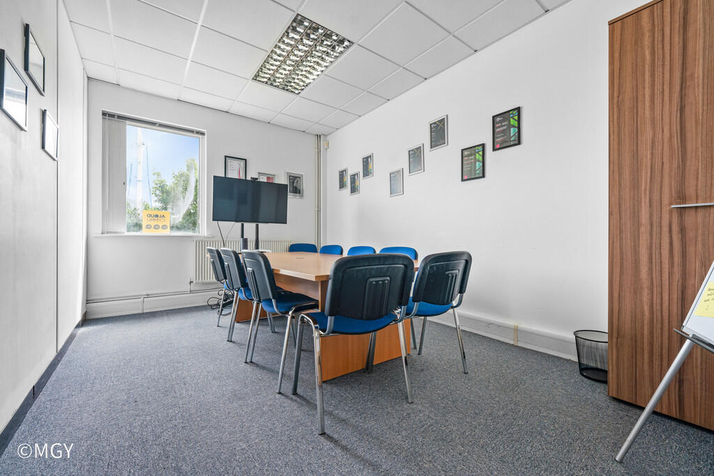 Internally, the offices are fitted out with suspended ceilings, plaster and painted walls with perimeter trunking and carpet tiles to floor, male and female WC’s with tiled floors.