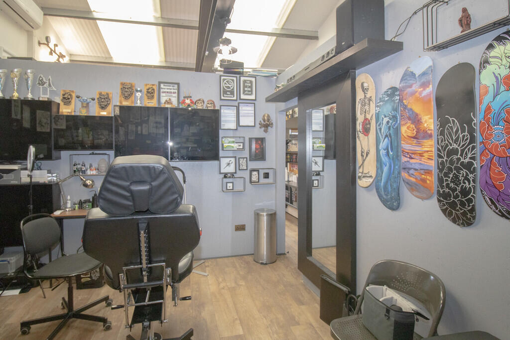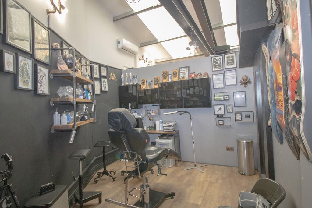 The room benefits from drop lighting to the treatment room area, laminate flooring, roof lights providing natural light, Tea-point and shared W.C facility.